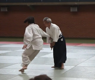Comenzamos una serie con la técnica sumi otoshi que quiere decir algo parecido a "hacer caer" en la "esquina". La esquina se refiere al espacio que va hacia el hombro de uke sin darse la vuelta. La caída se produce con uke mirando de frente a tori.